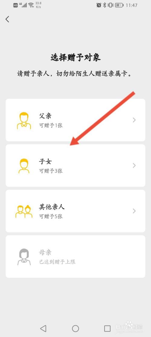 点击上面的添加亲属卡选项。