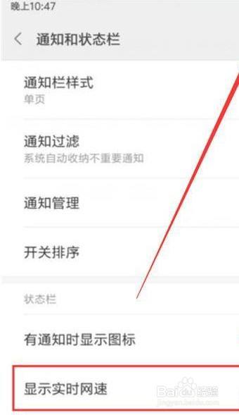 第3步选择显示及时网速就可以看到当前的流量利用数量了