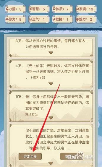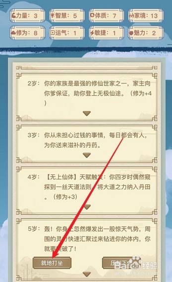 5岁时,因为是无上仙体,所以在5岁时,您变会渡劫,选择当场打坐。