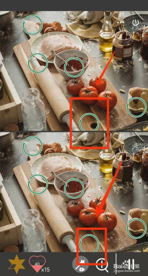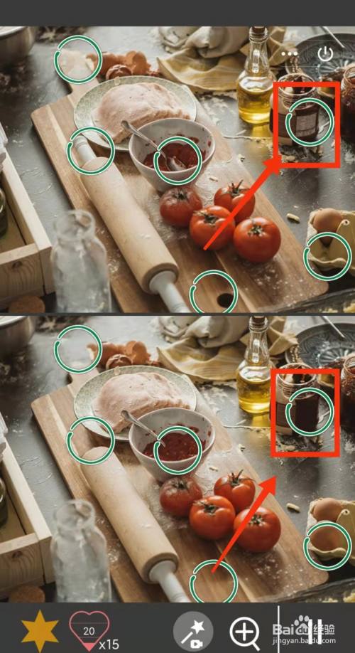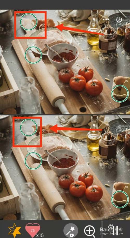 工具/原料小米手机Redmi k30MIUI12.5.3找分歧1500关2方式/步骤1上面有一个鸡蛋,下面有两个鸡蛋2上面的棍子有两个把手,下面只有一个3上面木板的提手长,下面木板提手短4上面的勺子在外面,下面的勺子在番茄酱里面5上面木板上有洞,下面的木板上没有6上面的罐子上有标签,下面没有END