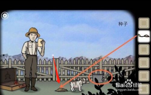 在小狗的右上方有水壶,我们到井边吊水,浇在种子上,这里要浇2次水,水壶之后就没有了。