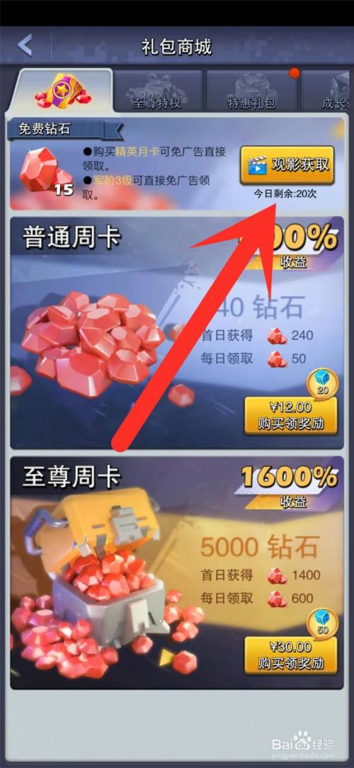 在周卡这里,我们可以看到免费的钻石,点击不雅影。
