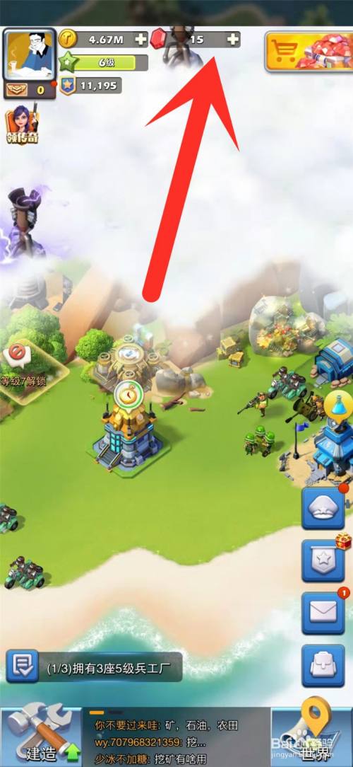我们在口袋奇兵界面,点击上方的钻石加号。