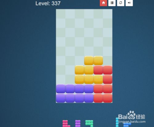 最后放上绿色方块外形,放在粉红方块外形的右上侧挨着,如图,这样就过关了。