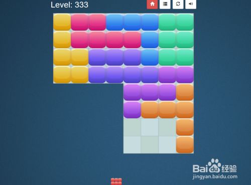 最后放上红色方块外形,放在橙色方块外形的左下侧挨着,如图,这样就过关了。