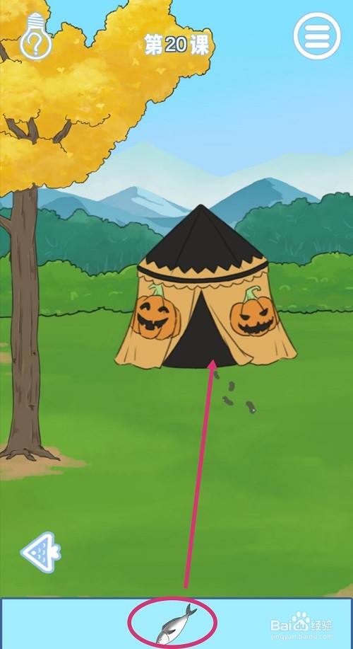 进入右侧场景,把【鱼】拖动到帐篷的门口。
