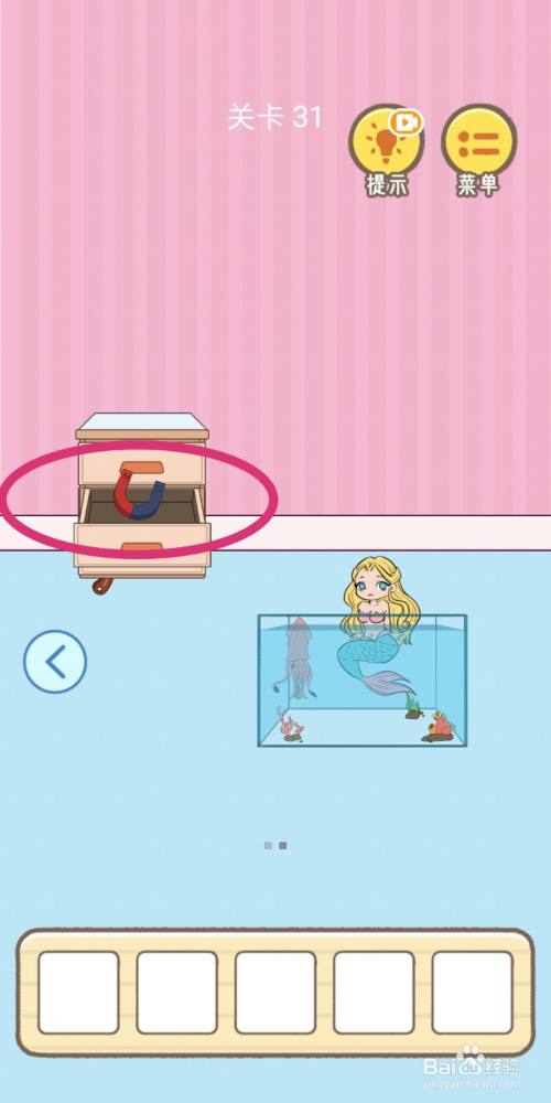 进入右侧场景,点击打开抽屉获得【吸铁石】。
