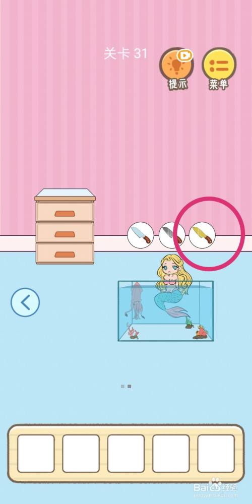 拖动【吸铁石】对柜子底利用,获得【生果刀】。