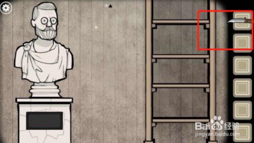 将眼球装到雕塑上,雕塑下有一把匕首。