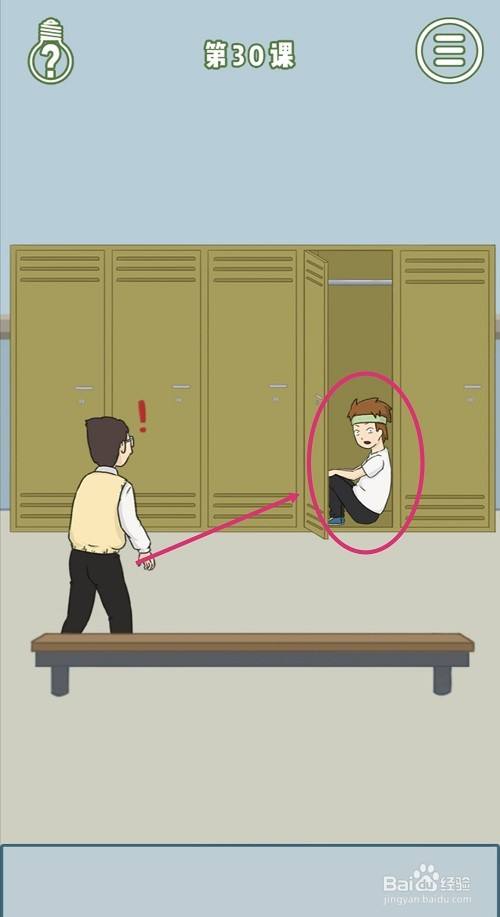 首先,点击右数第二扇柜门,躲在柜子里的学生被发现会跑入右侧场景。