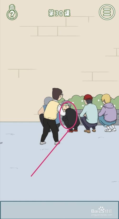 接着,点击左数第二个蹲着的人(穿黑衣服的),学生又一次跑标的目的右侧。