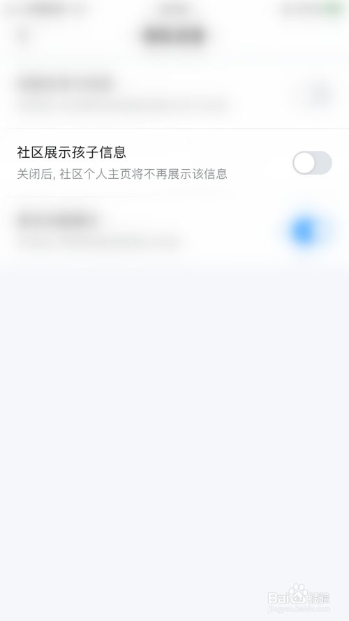 “社区展示孩子信息”后面的圆点变为蓝色即暗示开启鼎力家长社区展示孩子信息当作功