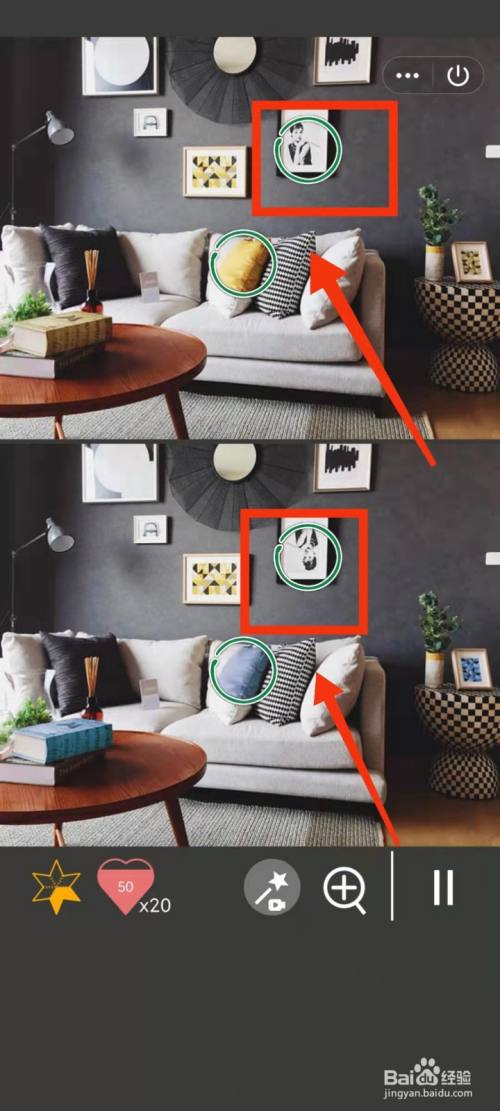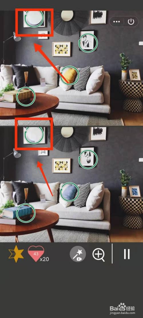 工具/原料小米手机Redmi k30MIUI12.5.3找分歧1500关2方式/步骤1上面的抱枕是黄色,下面的是蓝色2上面的人物画像是正的,下面的人物画像倒过来了3上面的书是黄色,下面的书是蓝色4上面的圆的图案黑色的多,下面的黑色的少5上面桌上的图案是黄色,下面的是蓝色6上面的地毯长,下面的地毯短END