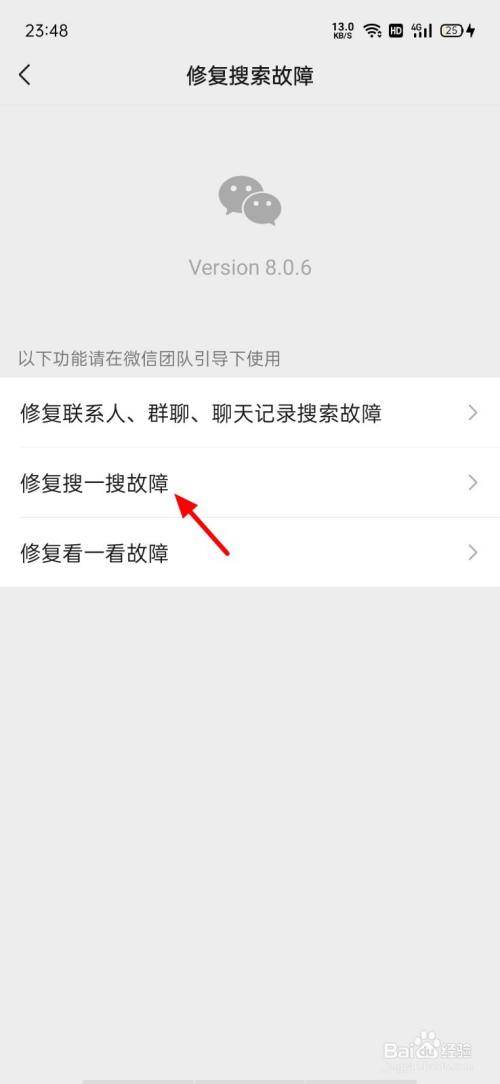 进入修复搜刮故障界面,直接单击修复搜一搜故障。