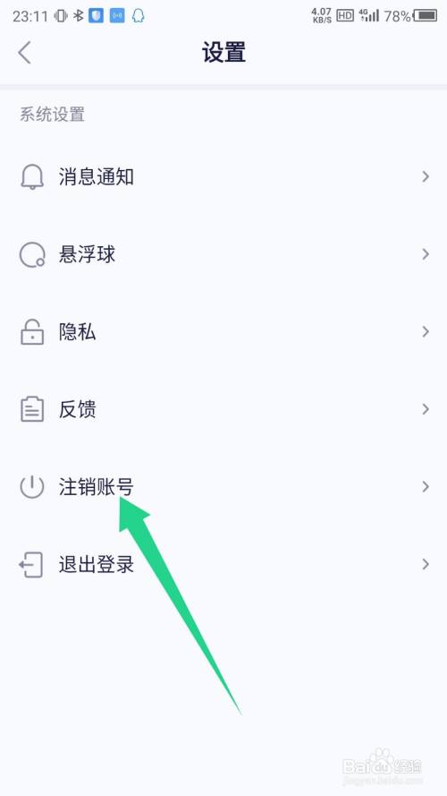 进入设置界面,点击刊出账号选项。