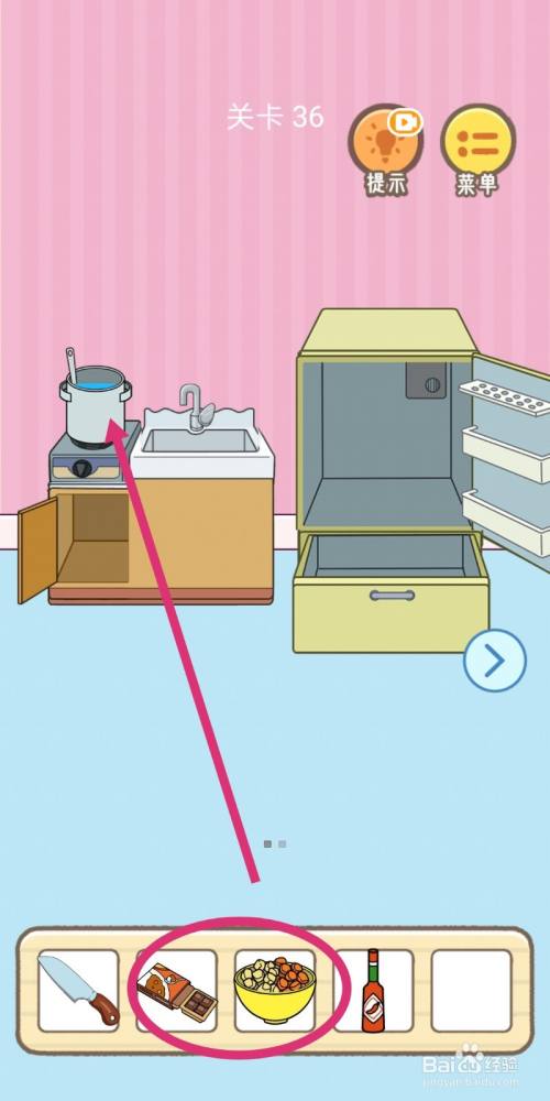 进入右侧场景,先把【辣椒】倒在米饭上,再把【咖喱酱】倒在上面。