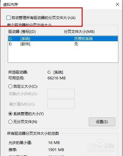 第6步打消“主动办理所有驱动器的分页文件大小”前的√即可。