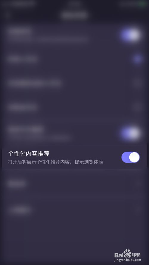 “个性化内容保举”后面的圆点变为紫色即暗示开启声洞个性化内容保举当作功
