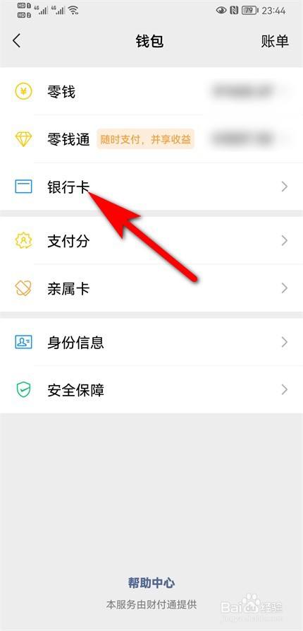 进入钱包页面,点击银行卡。