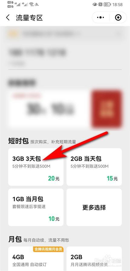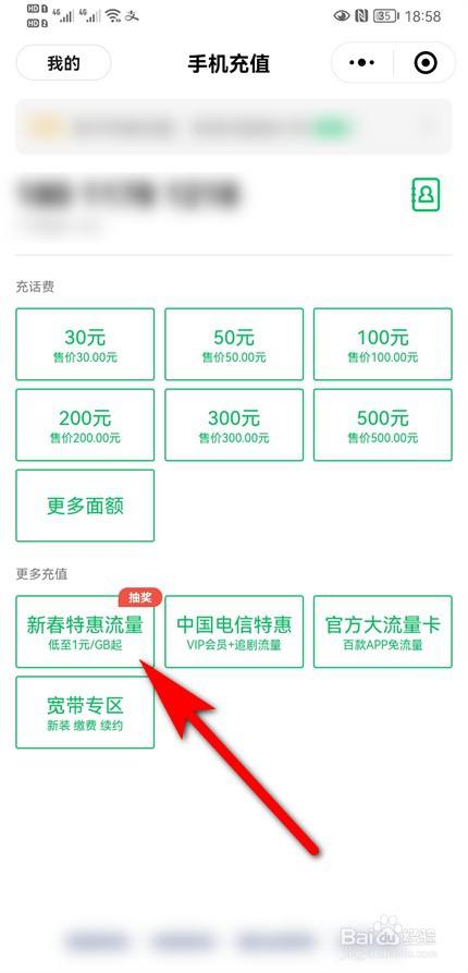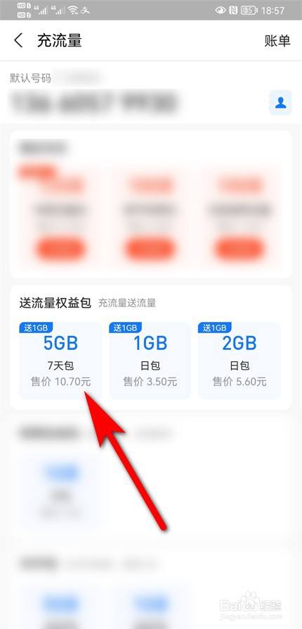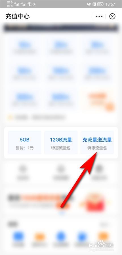 进入充值缴费页面,点击充流量,再选择流量大小。