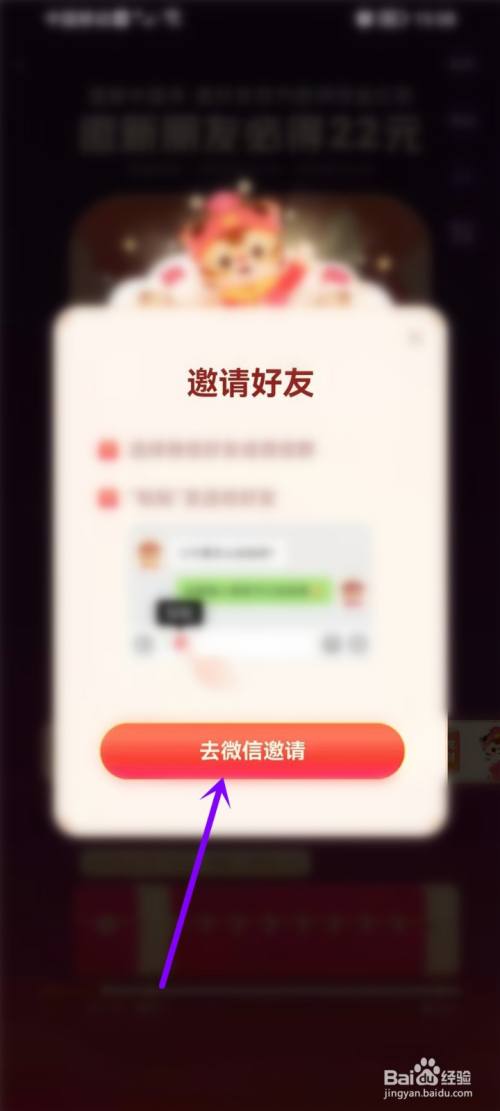 点击”去微信邀请“,将系统已复制的口令发给老友。