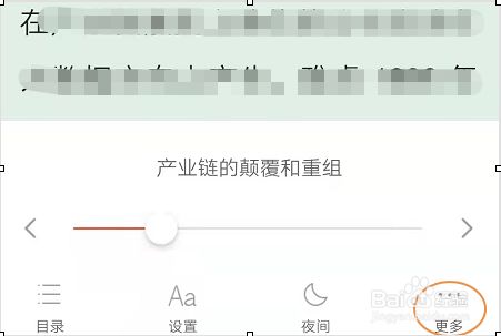 此时册本默认为全屏阅读模式,单击手机屏幕中心,这样就能在册本底部看到“更多”选项;