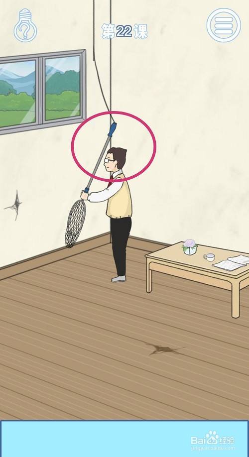 然后,再点击一下竿子,教员就可以拽动上面的绳索。