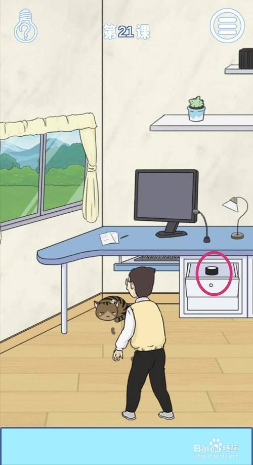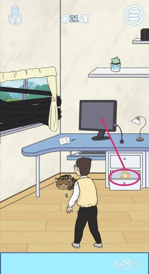 小猫被电视里的啼声吸引走后,就会露出藏鄙人面的学生,游戏过关。