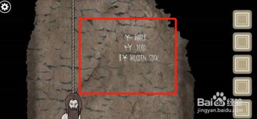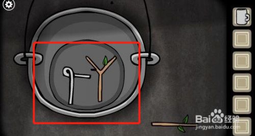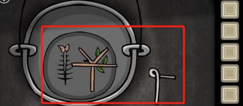 点击水桶、树枝,树枝会分当作两根,看墙上提醒,摆放树枝。