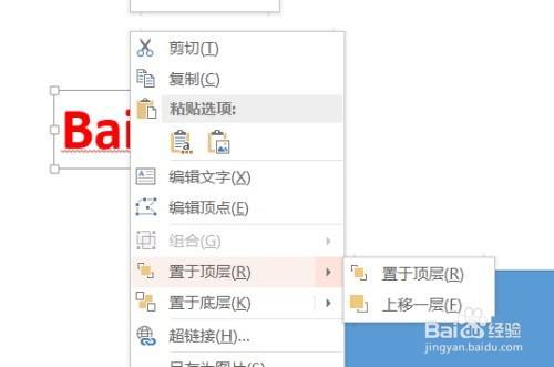 右击方才插入的文本框,在弹出的菜单中选择“置于顶层”