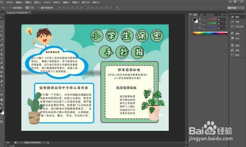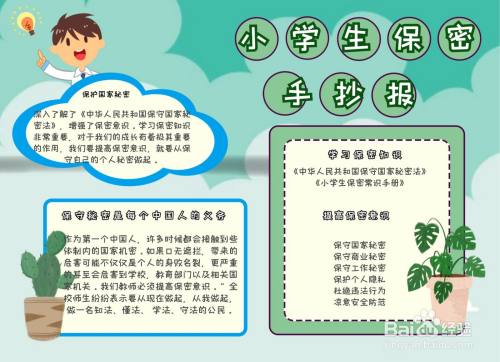 添加手抄报的文字内容,我们就建立好了一份小学生保密手抄报;