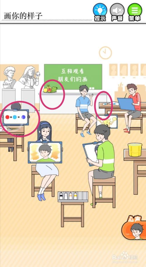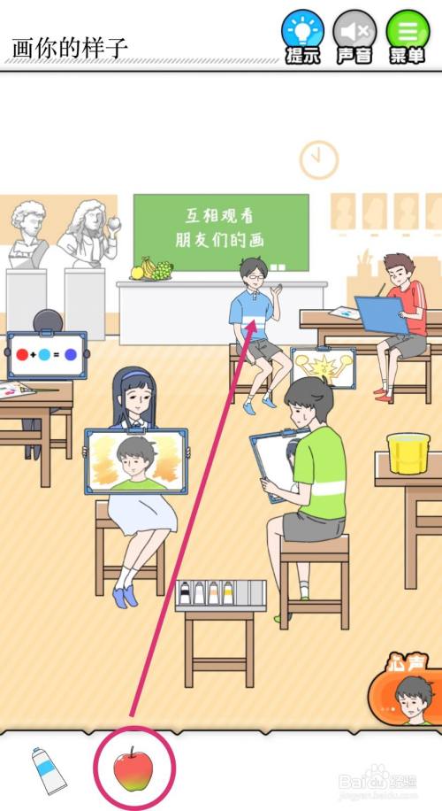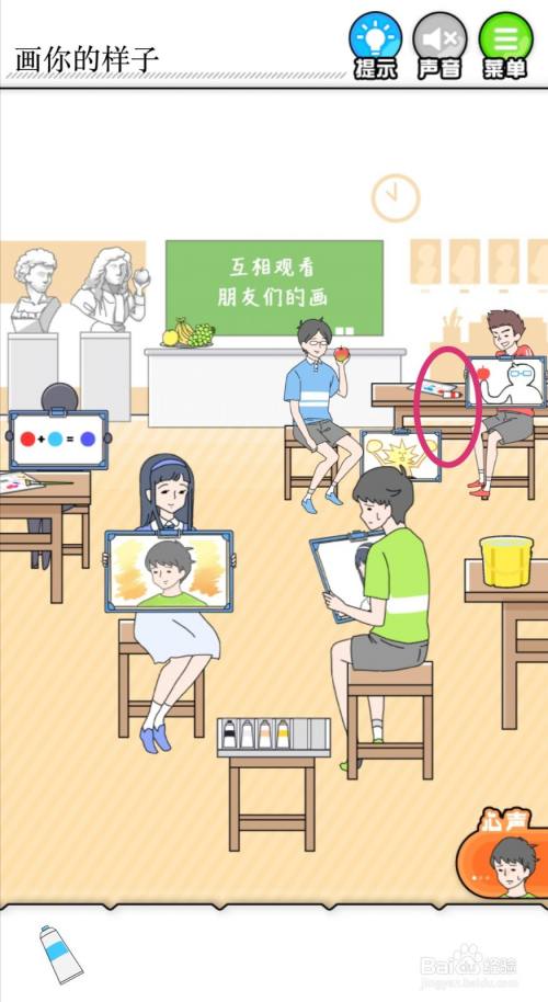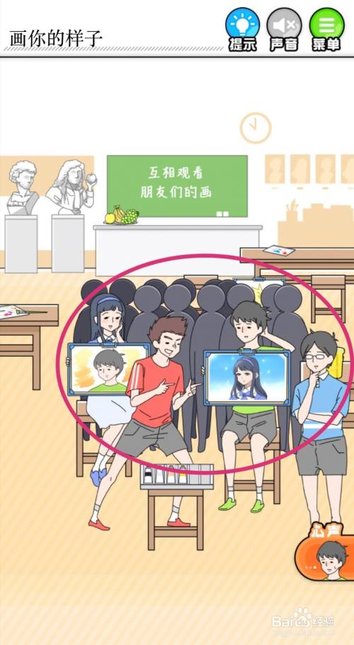 点击男本家儿画好的画像,男本家儿就会受到同窗的嘉奖,游戏过关。