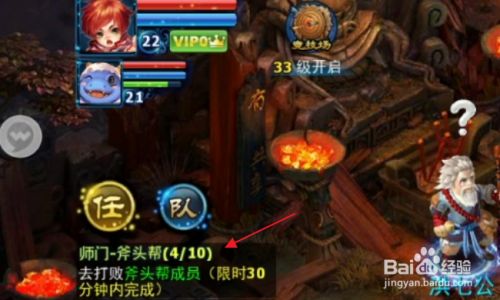 师门使命接了后,在左方使命处就会有所显示。这里,师门使命要求打败斧头帮当作员。