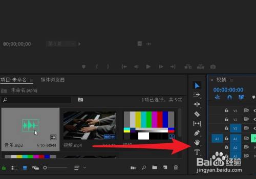 首先在项目面板中找到需要处置的视频,把它拖动到时候轴面板。