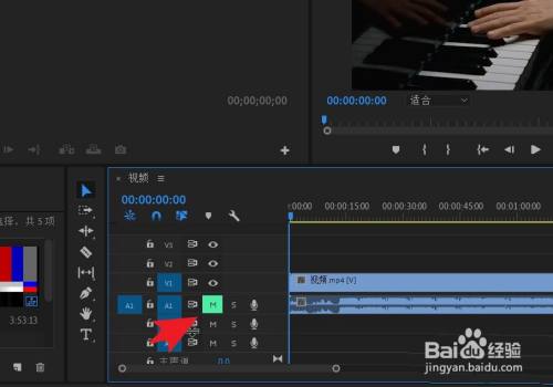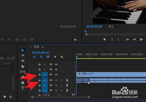 此时视频被别离放置到了音轨和视频轨。A1为音轨。