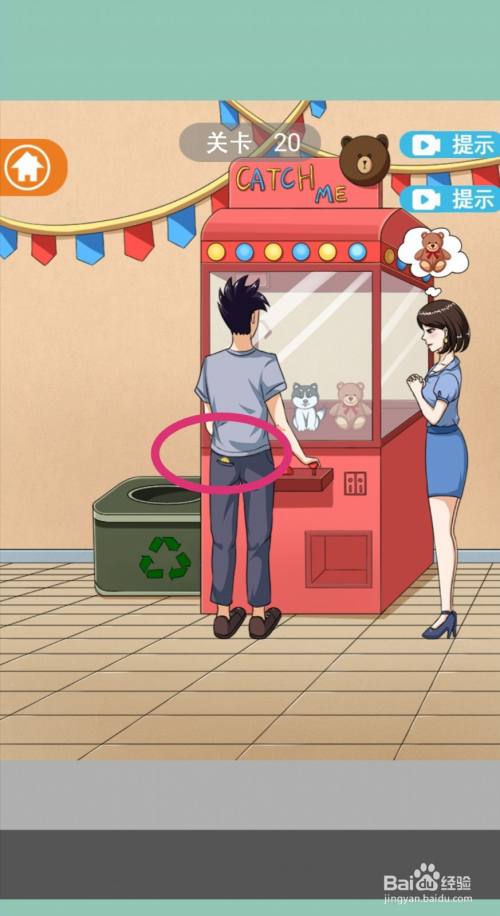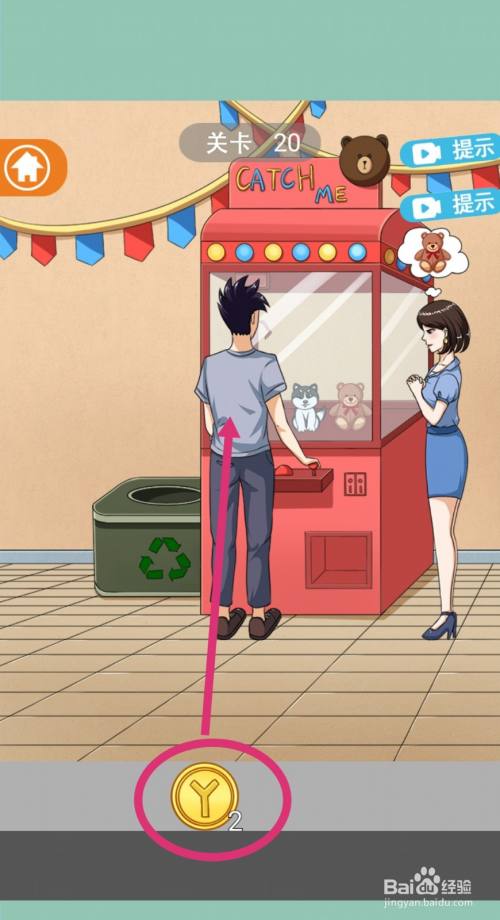 点击男本家儿角的口袋两次,获得两枚【游戏币】。