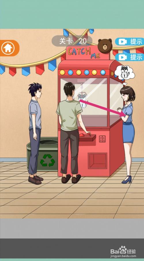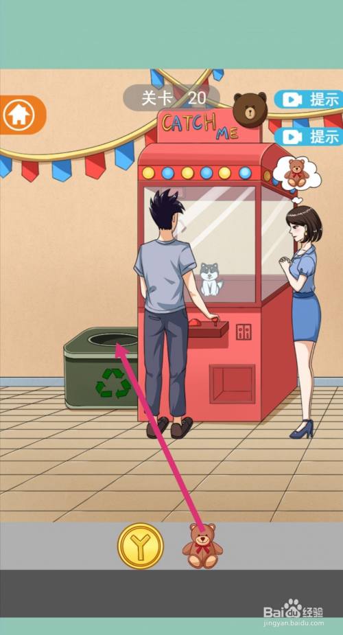 点击拖动【游戏币】一枚给男本家儿,让他去抓娃娃。