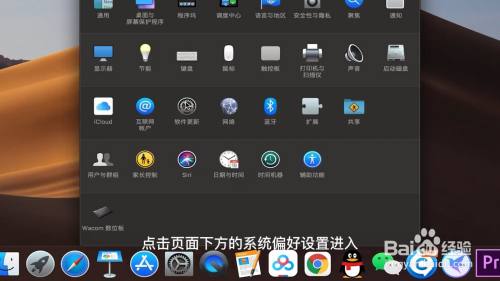 在苹果电脑的桌面上,点击页面下方的系统偏好设置进入。