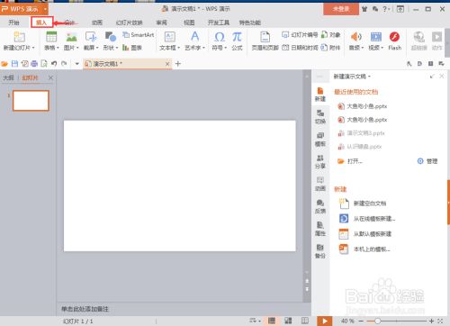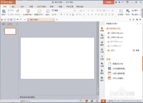 打开wps演示,进入它的本家儿界面;
