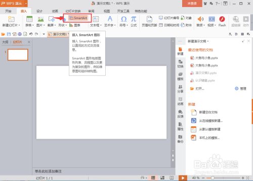 在东西栏中点smartart;