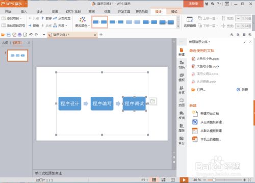 一个根基流程图就在wps演示中新建好了。
