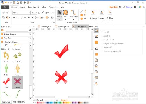 我们就在Edraw Max中插入了高亮对勾和高亮叉叉。