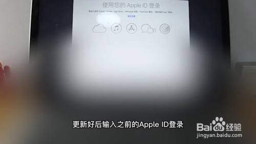 从装的时辰期待电脑主动更新,更新好后输入之前的Apple ID登录。