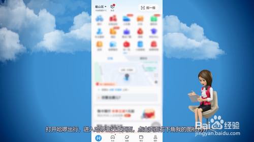 打开哈啰出行,进入哈啰出行本家儿页面,点击页面右下角我的图标打开。