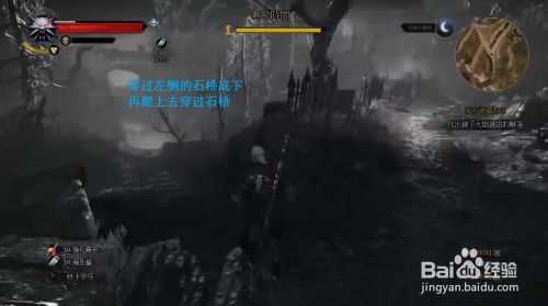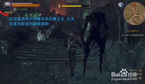 穿过石桥后 会碰到一个大型怪物 后面阶梯上的红光 可以获得蛇派剧毒银剑(必拿很是好的一把兵器 不外要战胜怪物才可以跳上去)