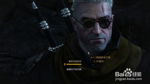 此时会呈现一个显示选项 是否帮忙欧吉尔德 建议选择帮忙(杰洛特已经和恶魔立下契约已经无路可退了)