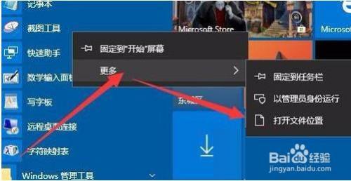 点击Windows10系统桌面上的菜单项逐渐/Windows配件/截图东西