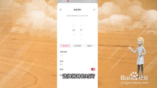 选择闹钟的时候,编纂名称、选好铃声保留即可。