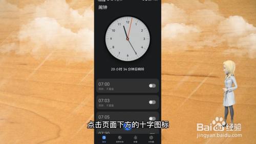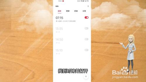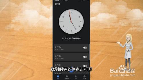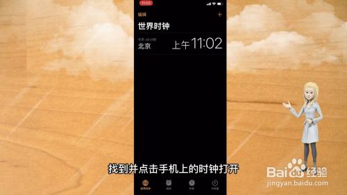 找到并点击手机上的时钟打开,点击页面底部的闹钟。
