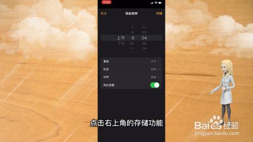 设置好后,点击右上角的存储功能就将闹钟设置好了。